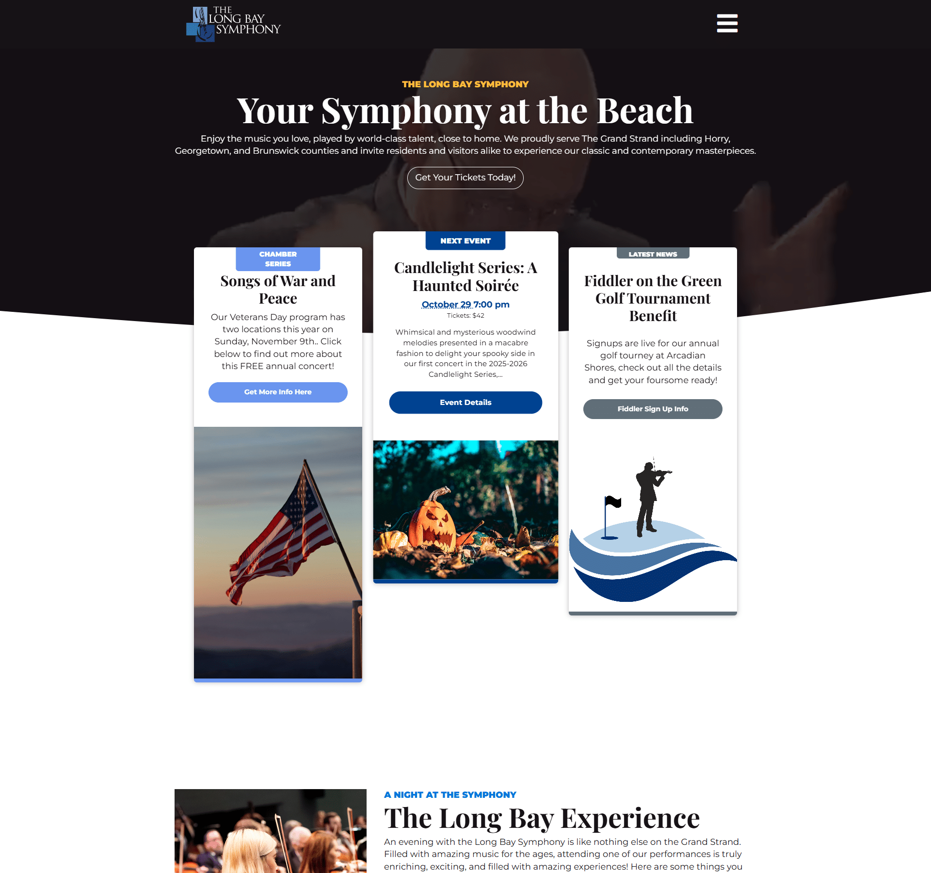 In 2019, our team provided an updated website for the symphony utilizing a clean, modern design, that integrates video and audio of the symphony, its performances, and its musicians, bring the experience of a night of classical music to life online.